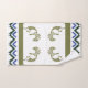 Southwest Style Arizona Kokopelli Bathroom Towels. Kokopelli bathroom towel set. Vivid green, white and blue color combination that you can customize background colors to match your decor. Kokopelli Native American Indian cultures. Attributed to ancient aliens or tribal art and inspired by cave and rock drawings. Customize your Southwestern Style Native American towel set colors and styles. Great gift idea.