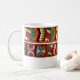 A colorful southwestern belt wraps around this mug, with leather buckle and geometric woven pattern.