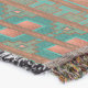 An aged, oxidized, verdigris copper patina colored design with modern geometric borders in coppers, teals and turquoise inspired by the colors and patterns of the artist's home in the desert southwest.