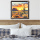 Experience the breathtaking beauty of the desert with this vibrant Southwestern sunset canvas print. Featuring a glowing sky painted in fiery oranges, soft purples, and golden hues, the scene captures a dramatic mesa and towering saguaro cactus standing tall against the horizon. The watercolor style enhances the natural warmth and serenity, making it both bold and calming.