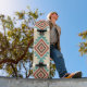 A Southwestern-style geometric pattern featuring layered diamond shapes in warm terracotta, deep brown, and cool turquoise tones. The distressed texture gives it a vintage feel, while the symmetrical layout adds a clean and modern touch.