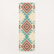 A Southwestern-style geometric pattern featuring layered diamond shapes in warm terracotta, deep brown, and cool turquoise tones. The distressed texture gives it a vintage feel, while the symmetrical layout adds a clean and modern touch.