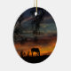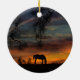 A beautiful silhouette horse in a southwestern sunrise with Heritage oak trees. A beautiful horse Christmas ornament.