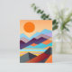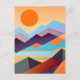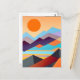 Postcard in a Minimalist, modern abstract of the Southwestern desert and mountains, in Earth tones, accented with turquoise