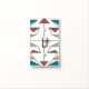 Native, tribal, earth tone shades of colors. Rustic color palette with Turquoise, green, rust, copper, red, creamy yellow, avocado green, cream tan and gun metal dark gray are utilized here. Triangular and arrowhead shapes with connecting line work throughout.
