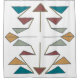 Native, tribal, earth tone shades of colors. Rustic color palette with Turquoise, green, rust, copper, red, creamy yellow, avocado green, cream tan and gun metal dark gray are utilized here. Triangular and arrowhead shapes with connecting line work throughout.