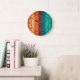 Southwestern Orange Red Turquoise Rainbow Stripes Large Clock