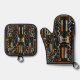 Southwestern Scratch Art Pattern Oven Mitt & Pot Holder Set