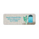 This return address label features a mixed photography and digital art design with blue double doors and a saguaro cactus on the right and new address on the left. Personalize it in the template field with your details. In customize, you can select a typeface style, color, and size you prefer.