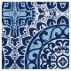 Southwestern / Aztec inspired batik textile design fabric in a sun dial / mandala pattern - navy / indigo blue and white, accented with cerulean blue
