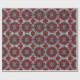 Southwestern / Aztec inspired batik textile design wrapping paper in a sun dial / mandala pattern - rich tomato red, black and white, accented with silver gray / grey