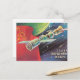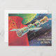 Soviet retro postcard with spaceship Glory to the achievements of October!