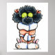 Funny drawing by Andie, illustrator and creator of Off-Leash Art™, of a black Poodle dressed in peach robe, bunny slippers, and cucumber slices.