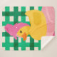 A charming rubber duck wrapped in a pink towel turban sits atop soft, cozy towels. The vibrant green gingham background adds a playful contrast to the warm pastel tones. Perfect for adding a touch of whimsy and relaxation to any space!