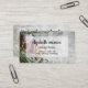 A stylish spa business card with a transparent white frame design on the front and more details on the back features a design of flowers, leaves, oil, stones. Personalize this business card to be uniquely yours.