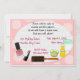 This is a cute invitation for a kids spa party or make over party, a glitzy girl glamour party, salon party or a sleep-over spa night! All the text on the card ( front and back) can be changed to create which ever type of party you want. Pink and polka dots, with a girl with cucumbers on her eyes, and on the back is nail polish, lipstick, perfume, a hair brush and a jar of cream. A cute and fun kids birthday party invitation that will set the mood for your fun party!