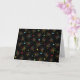 Customize this greeting card for a birthday or other occasion. The front features a Mid Century Space Age atomic inspired motif interspersed with random dots in a colorful pattern. All four colors and the background may be edited for a unique look.