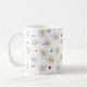 A cool Mid Century Space Age atomic inspired motif interspersed with random dots in a colorful pattern decorates this mug. All four colors and the background may be edited for a custom look.