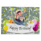 A Cute Large Gift Bag In Gray And Yellow For A Childs Birthday In A Space Age Theme