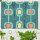 This atomic era styled mid century modern abstract art has circles, lines and sputnik starbursts. For lovers of midcentury kitsch designs. Multicolored and colorful with teal, turquoise, orange and yellow.