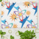 This fun and colorful tea towel features an updated pattern of classic Mid Century Modern Atomic Age motifs of the 1950's and 1960's, featuring abstract orbiting spheres, rocket ships, and starbursts in a variety of colors.