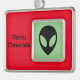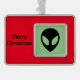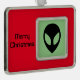 Crafted with a vibrant red and green color palette, this ornament immediately brings the festive spirit of Christmas to your tree, while the striking black space alien head adds a playful and otherworldly touch. The words “Merry Christmas” are cheerfully displayed across the ornament, bridging the holiday cheer with a nod to the mysteries of the cosmos. Perfect for any science fiction enthusiast, UFO aficionado, or lover of all things extraterrestrial, this ornament is sure to spark conversations about the endless possibilities of life beyond Earth, flying saucers, and UFO sightings.