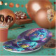 Make every celebration special with these durable, customizable paper plates, featuring a space alien & friend, sturdy construction, and disposable convenience—perfect for birthday parties.