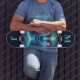 Colorful space alien personalized skateboard, edit the text yourself when ordering.