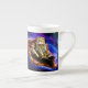Space cat lying on a pizza bone china mug