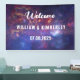Modern, elegant wedding banner. Beautiful sky, galaxy, milky way photography. Perfect for newly weds. You can personalize it with bride and groom's names and date.