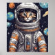 Space Cowboy Cat Print, Bright Rainbow Digital Art Poster