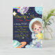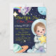 Celebrate your little star’s special day with the Space Explorer Party Invitation. This playful design showcases a baby astronaut floating among smiling planets, pastel rockets, and shimmering shooting stars against a deep navy, starry sky. With a soft watercolor finish and whimsical charm, this gender-neutral design is perfect for space-themed birthdays.