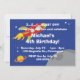This fun birthday party invitation features a rocket spaceship flying by some planets in outer space. Completely customizable.