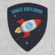 A patch with a red and grey rocket ship blasting off in space among the stars. The text reads "Space Explorer". Perfect for anyone who loves a space adventure.