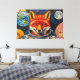 This vibrant artwork by Otis Porritt presents a striking fox, rendered with rich, textured strokes, peering confidently from within an astronaut's helmet. The fox's orange and white fur contrasts with the deep blue of its visor and the bold red of its space suit, complete with an American flag patch. Behind the intrepid explorer, a swirling cosmos bursts with vivid blues, purples, and oranges, dotted with celestial bodies, including a prominent moon. The dynamic, painterly style gives the digital medium a tactile quality, bringing the cosmic scene to life.