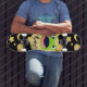 Modern, cute, cool and fun skateboard design. This design features a surprised frog face with a space pattern of moon sun and stars with custom name. Perfect for kids on holiday season, special occasions like birthdays, family reunions or as a "everyday gift"