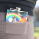 Well made flask, a little better than I had expected. Flask came in clear plastic box which gave it a nice presentation when I took it out of the zazzle packaging. Image is not printed on flask but on sticker. Don't know how this will hold up I haven't used it yet. This would make a Great gift! I plan to purchase more for friends! Cheers. I thought a little brighter than computer. Very crisp, writing wasn't
