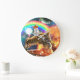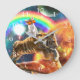 Space Galaxy Cat Riding Tiger on Pizza Large Clock