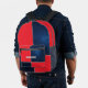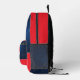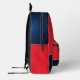 Stand out with this bold and modern personalized backpack. Featuring a striking red and navy geometric design with a starry night sky, this bag combines space age style with practicality. The backpack is designed for students and adventurers who seek a cool space themed boost in the style and function of their everyday gear. Ideal for school, sports, or travel, the bag can be personalized with a name on the front pocket for the finishing touch.