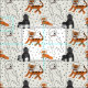 Space is pretty wild, especially when it's filled with some wild animals playing at being astronauts. This pattern features illustrations of a tiger, a fox, a gorilla and a polar bear wearing retro style space helmets set against a beige or ivory colored background with black star graphics. Craft up your own out of this world gift with this cute fabric.