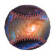 Galaxies, Stars and Nebulae series: A striking baseball for astronomers featuring a view of the nearby barred spiral galaxy NGC 1672. One of its most striking features is the dust lanes that extend away from the nucleus and follow the inner edges of the galaxy's spiral arms. Clusters of hot young blue stars form along the spiral arms and ionize surrounding clouds of hydrogen gas that glow red. Delicate curtains of dust partially obscure and redden the light of the stars behind them by scattering blue light.