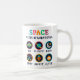 Playful space themed artwork made for curious kids and young students. Cute symbols like UFO, planet, moon, stars, rocket and alien help children explore space science and basic astronomy in a fun and friendly way.