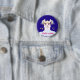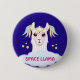 Space llama button. This space llama is decorated with jewels and ribbons on indigo blue background. Text can be personalized.