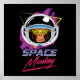 Colorful 1980s retro space monkey in purple galaxy comics art