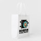 I own a lot of reusable grocery bags, but this one holds its box shape and simply stands up on its own even if there is nothing in it. Its stiffer than your regular reusable bag too, and the material is water resistant. I poured water on the exterior and it didn't penetrate inside to the other side. I'm buying a couple more. Wish I knew how durable these bags were or I would have purchased a few more with my initial order. I also like how it folds and buttons up when not in use, making it easy to put into a handbag or luggage. I haven't used this bag yet, as I purchased it for travel use, like when you're at the airport and need to small sturdy bag to place any airport purchases in, like food, souvenirs etc. I can tell you when you first see this bag, it looks very cheap, but after closer inspection of the material and the seams its a very sturdy reusable bag. I tested it out by putting some really heavy objects inside and I could not observe any stress to the bag at all. Another thing I like about it, is the fact the medium size that this is makes it easy to just carry it in your hand without the bottom of the bag scraping the ground, like most other bags do when you're short. That alone, deserves 5 stars. I just wish there were more colors to choose from! The PDX Airport Carpet printing looks just like the photo, and using this bag during travel might be a conversation piece when/if a native from Oregon happens to see it.