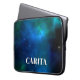 A custom laptop case with a blue space background. Add your own name to this product by using the custom template.