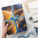And out of this world transformation with this stunning cinematic galaxy wrapping paper high definition design features a breathtaking view of the cosmos complete with a massive ring to planet glowing nebula streaking comets and distant worlds the vibrant gold deep blue and fiery orange tones create a truly epic look that is perfect for space enthusiast aspiring astronauts or anyone who loves the mystery of the stars