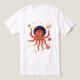 Dive into a universe of fun with our 'Space Octopus Chef' t-shirt! This whimsical design features an adorable orange octopus wearing a space helmet (complete with tiny fish friends!) while expertly cooking up cosmic delights in the depths of space. Surrounded by planets and stars, this tentacled chef is ready to serve up smiles. Perfect for foodies, sci-fi fans, and anyone who loves unique, humorous designs!
