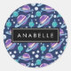 Space Pattern, Planets, Stars, Galaxy, Your Name Classic Round Sticker