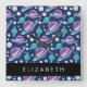 Space Pattern, Planets, Stars, Galaxy, Your Name Square Wall Clock